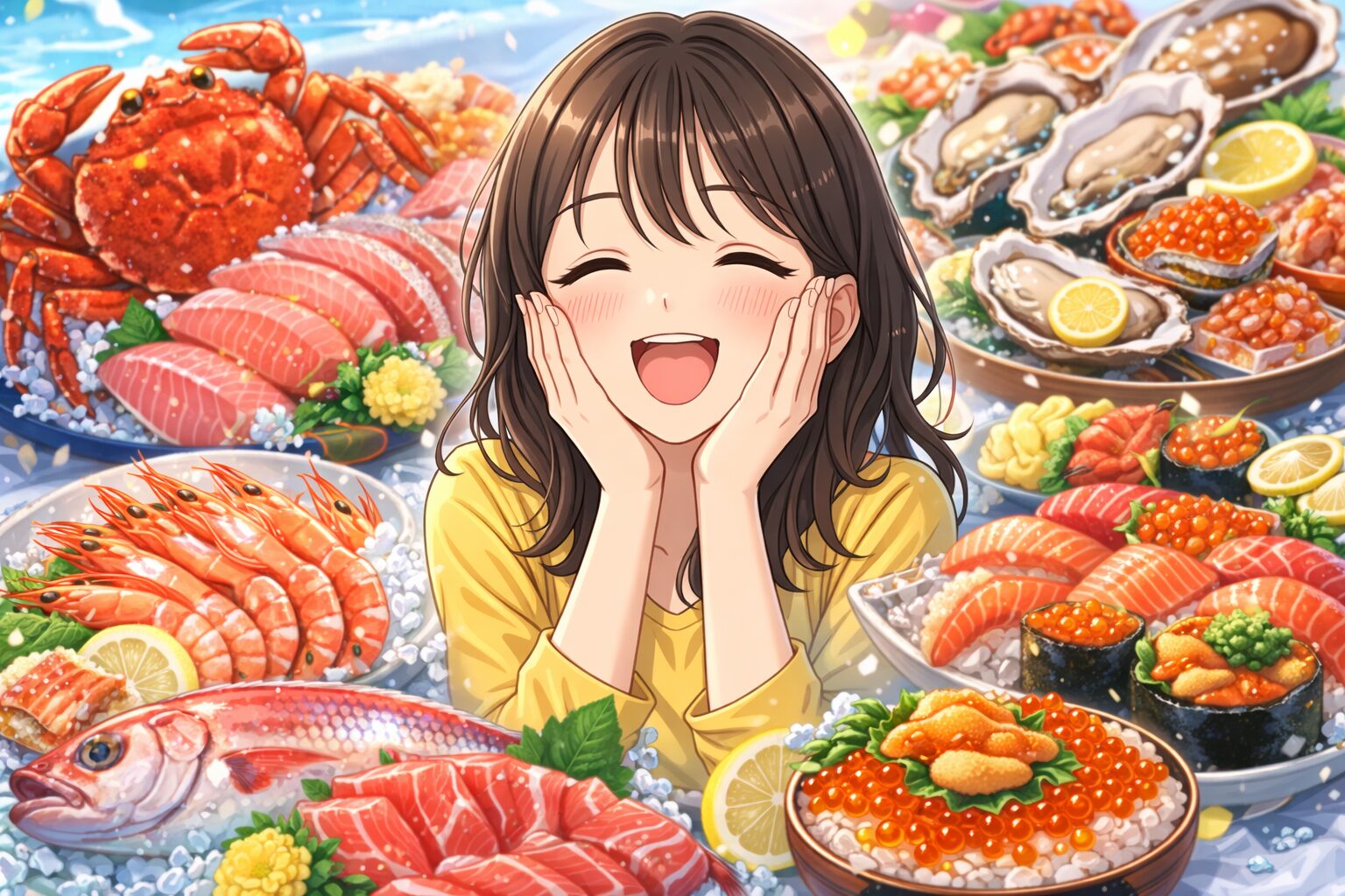 つまり、いろいろな料理が次々に出てくる豪華な海鮮コースというイメージです。